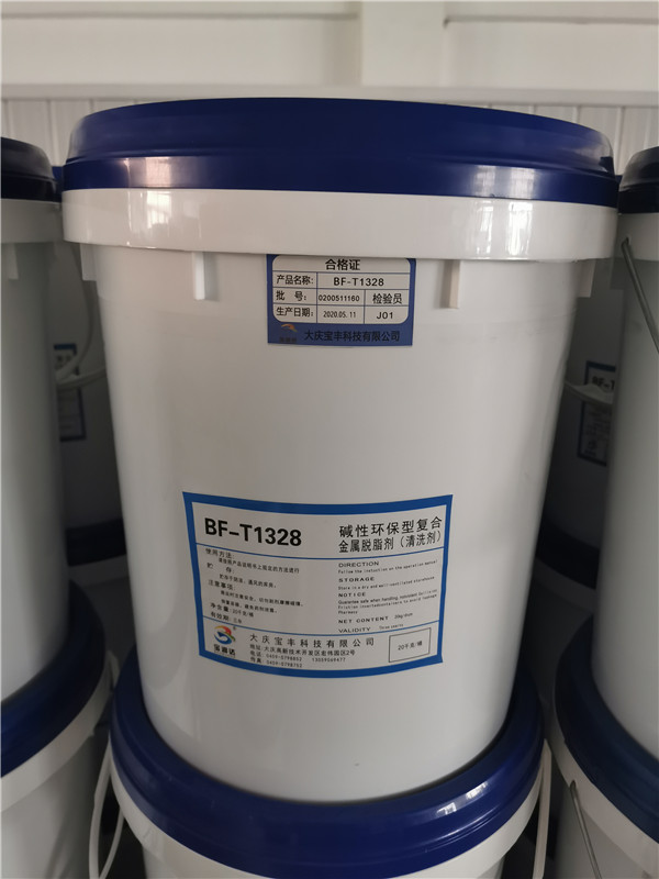 BF-T1328系環(huán)保型復(fù)合金屬脫脂劑系列產(chǎn)品之一。本品因含有強(qiáng)力滲透乳化劑、表面活性劑和特殊的銹抑制劑、不含磷及亞硝酸鹽???*代替易燃的石油溶劑,用于去除機(jī)械設(shè)備零部件、建筑物、辦公設(shè)施等表面上的油污。是金屬表面涂裝前處理工藝的**材料??梢杂糜谇逑此?、容器、管道及設(shè)備上的殘留污垢??膳cBF-T13B、BF-T13C配套使用**復(fù)雜成分的油垢、污垢,對人及環(huán)境友好**,可稀釋使用**使用成本**顯著。(還適用于通過式壓力清洗機(jī)、超聲波清洗機(jī)、全自動(dòng)清洗機(jī))
