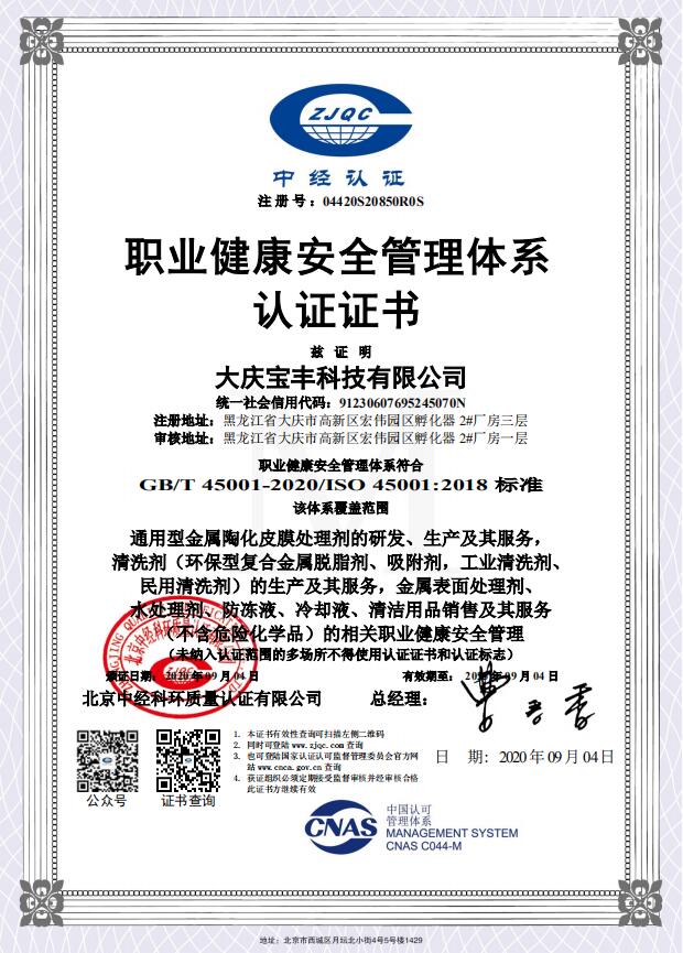 職業(yè)健康管理體系認(rèn)證證書