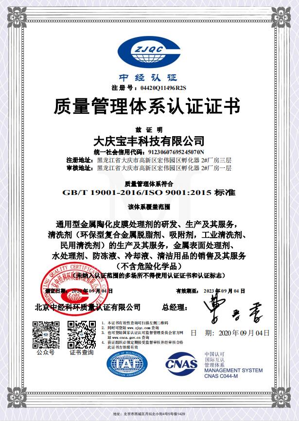 質(zhì)量管理體系認(rèn)證證書