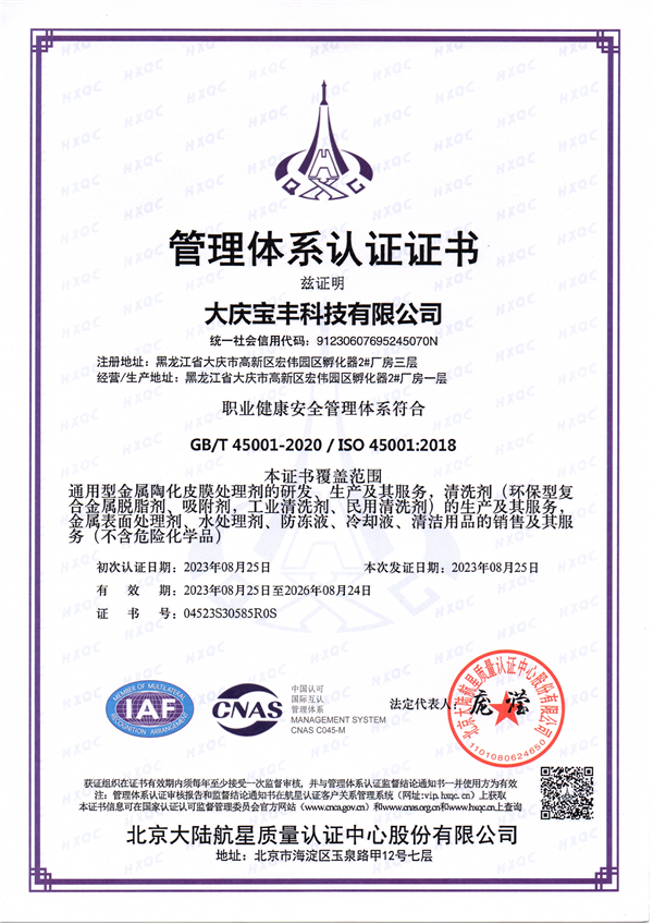 職業(yè)健康管理體系認(rèn)證證書